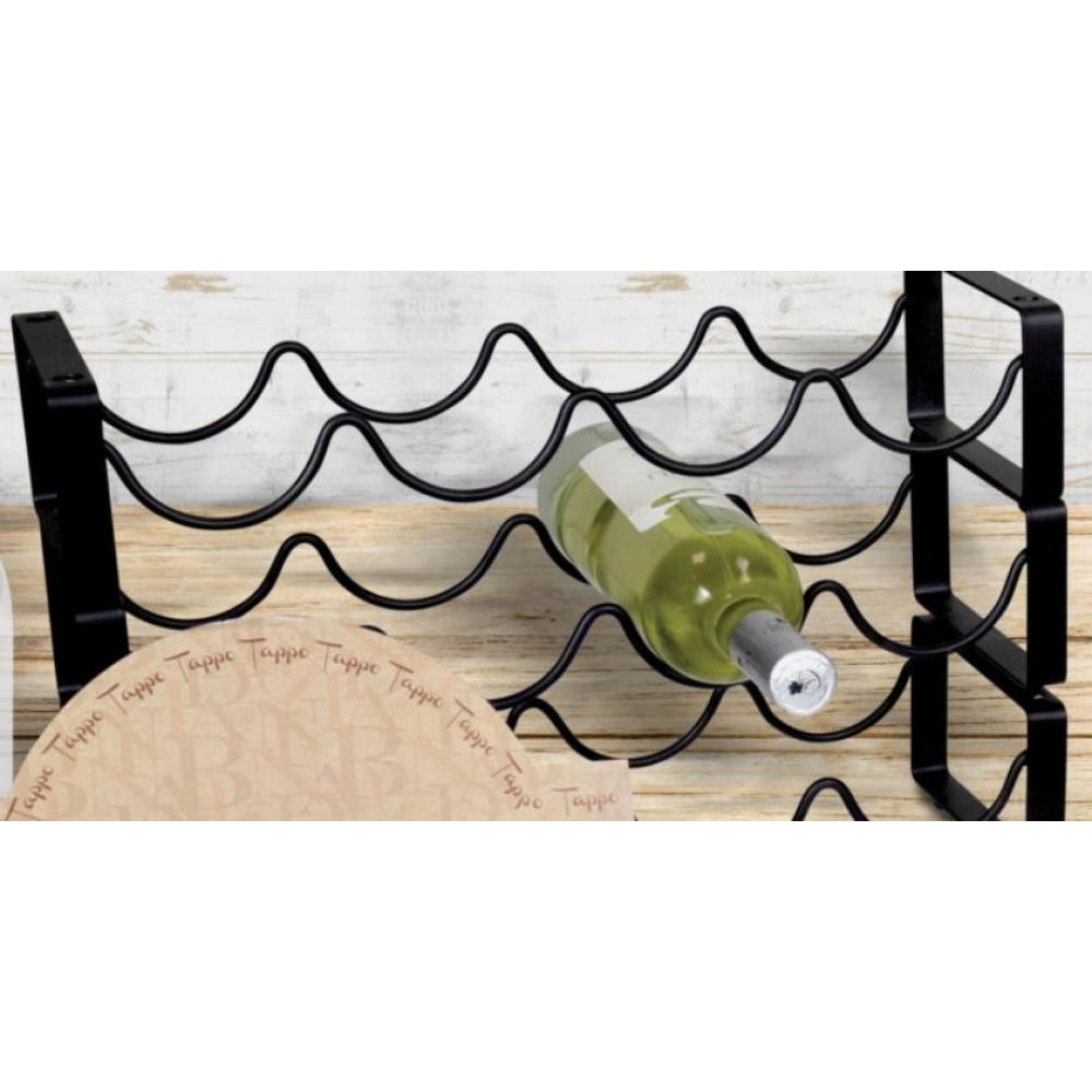 Fekete borosüveg tartó, rakásolható, egymásra helyezhető.