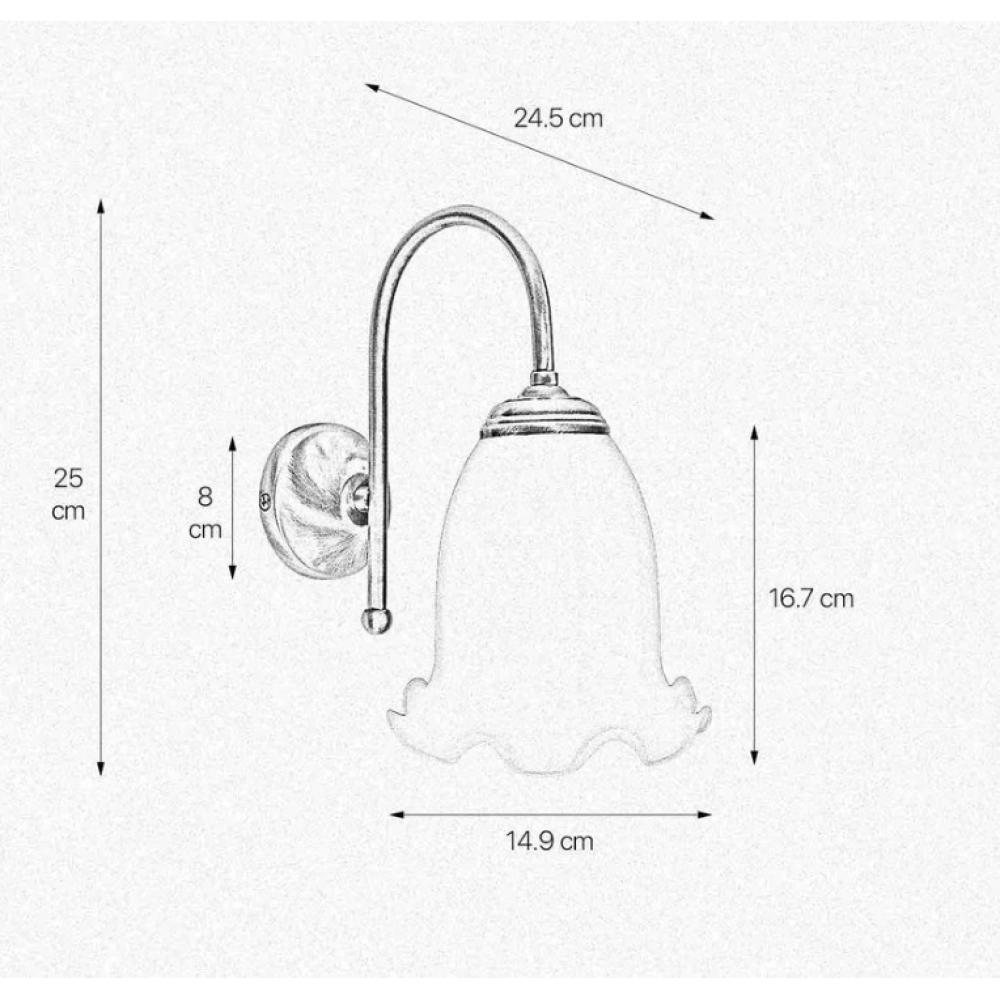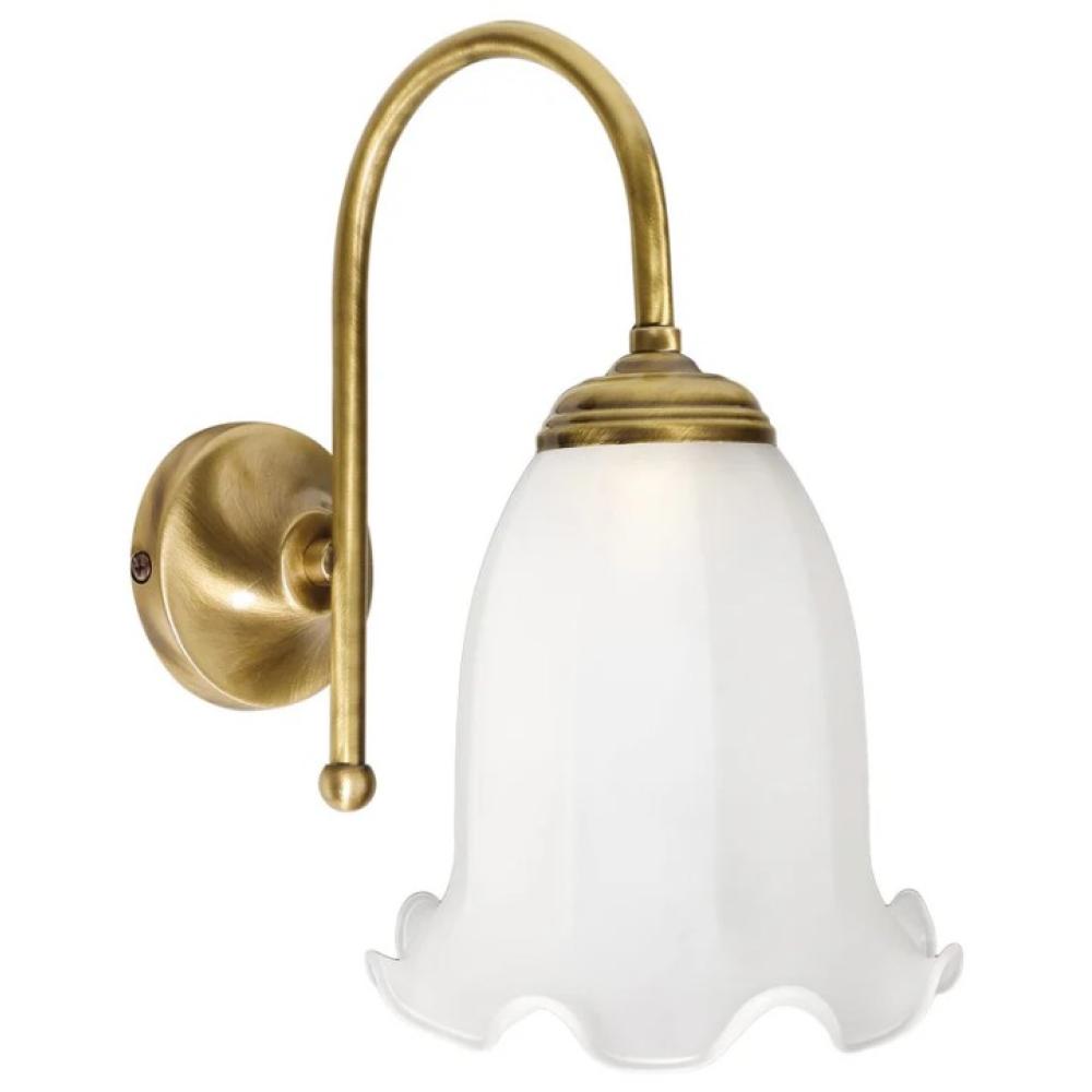 Egy kifinomult fali lámpa, amely kiemelkedik romantikus és elegáns kialakításával. A sárgaréz szerkezet egy kecsesen ívelt karral rendelkezik.