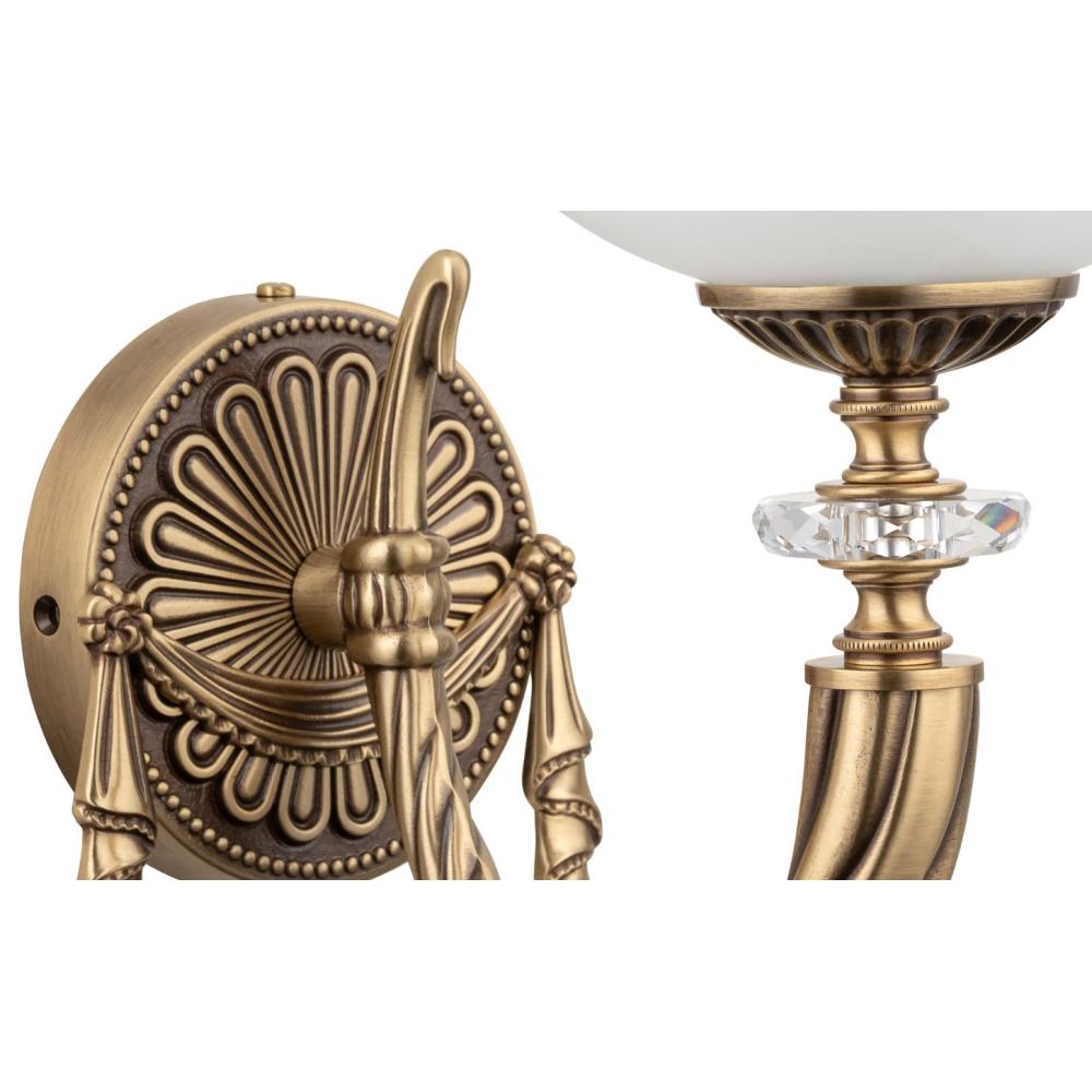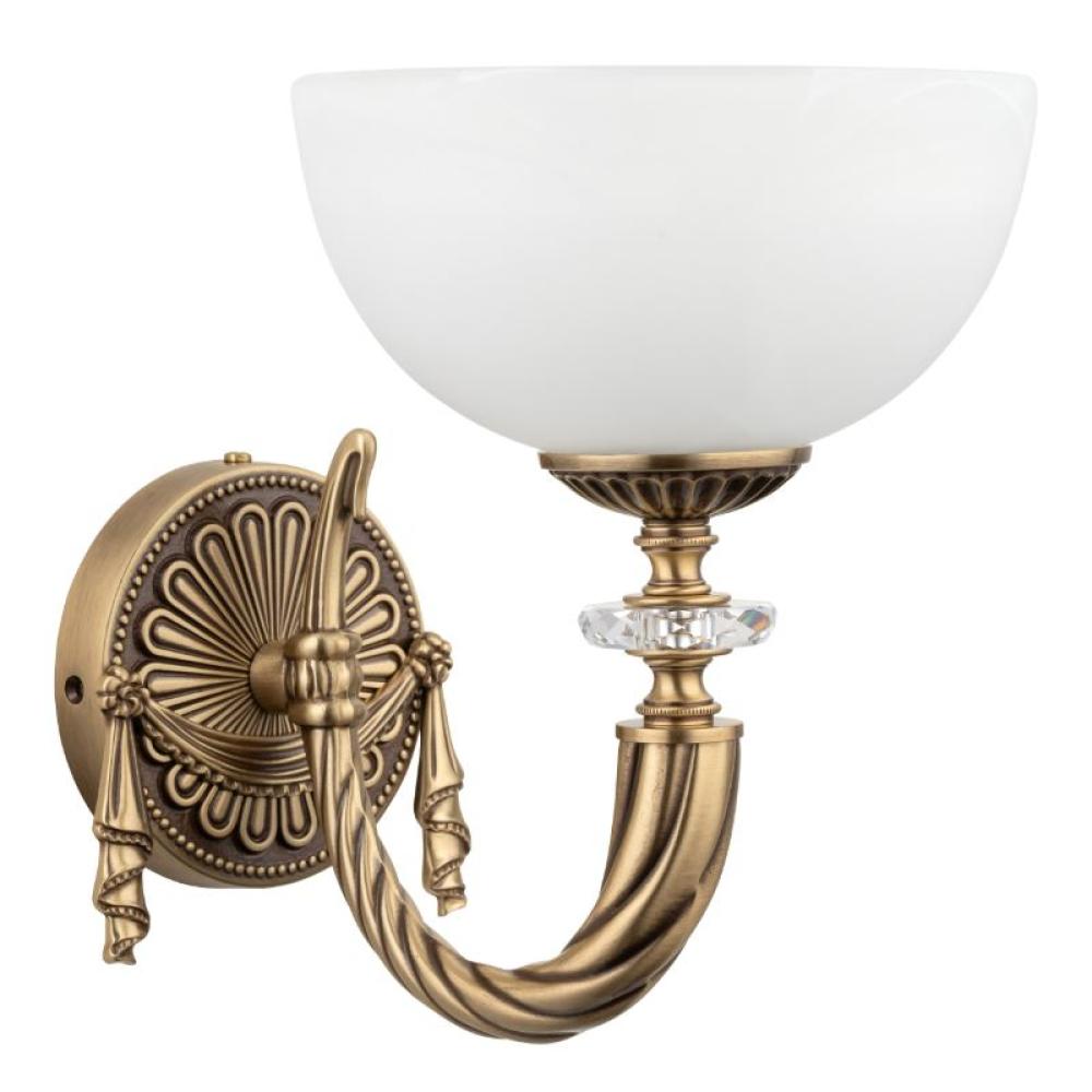 HOKU Patinázott réz szerkezetű, elegáns, luxus falikar klasszikus stílusban, opál üvegbúrával, opciós színek / 22x28 x 26 cm