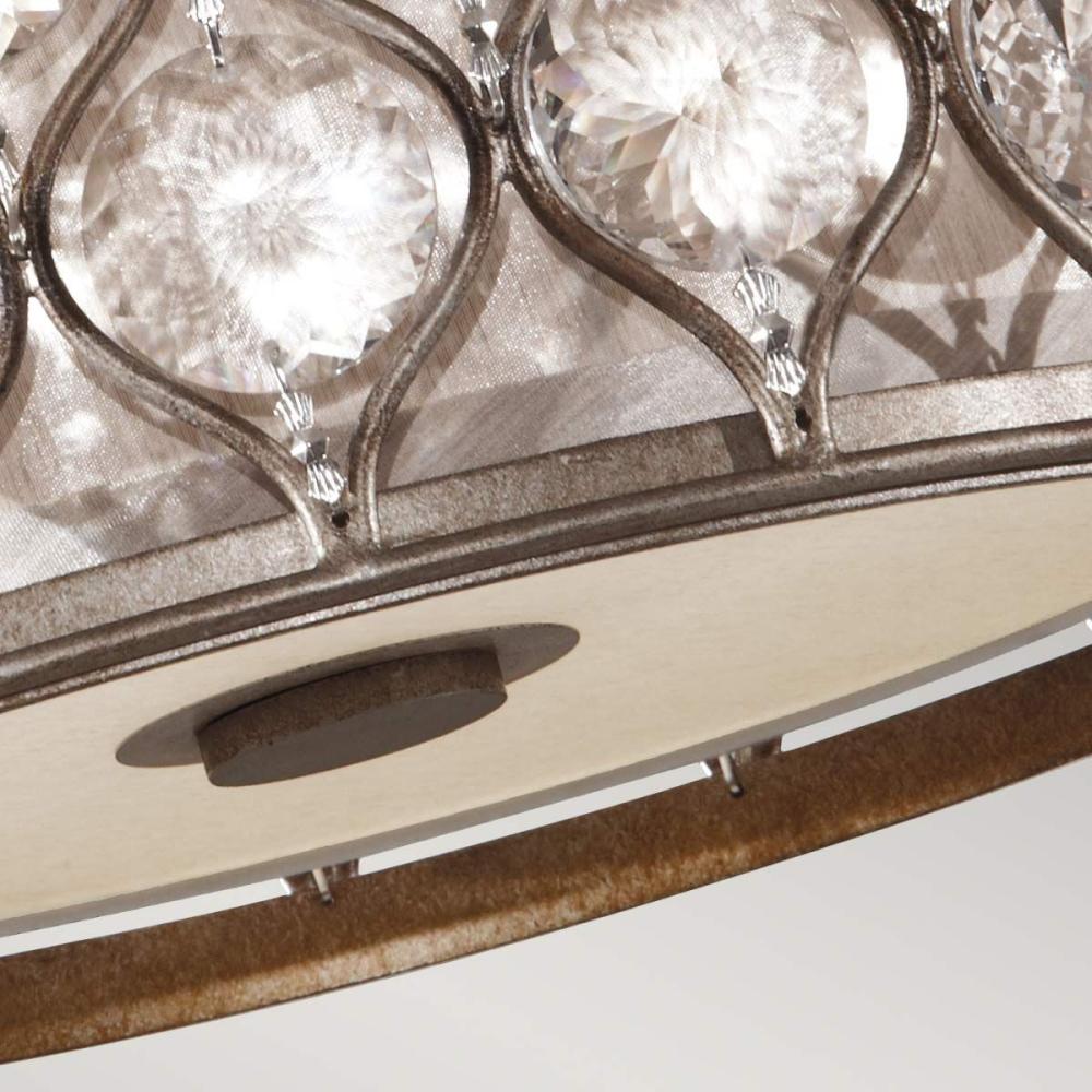 A lámpa vászonernyőket és elegánsan kidolgozott üveg alsó diffúzorokat tartalmaz.