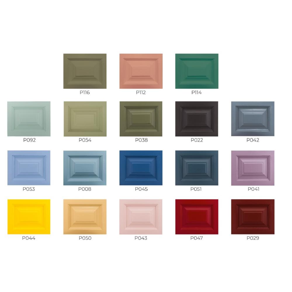 100%-ban tömörfa (fenyő). Sokféle opcionális színben rendelhető.