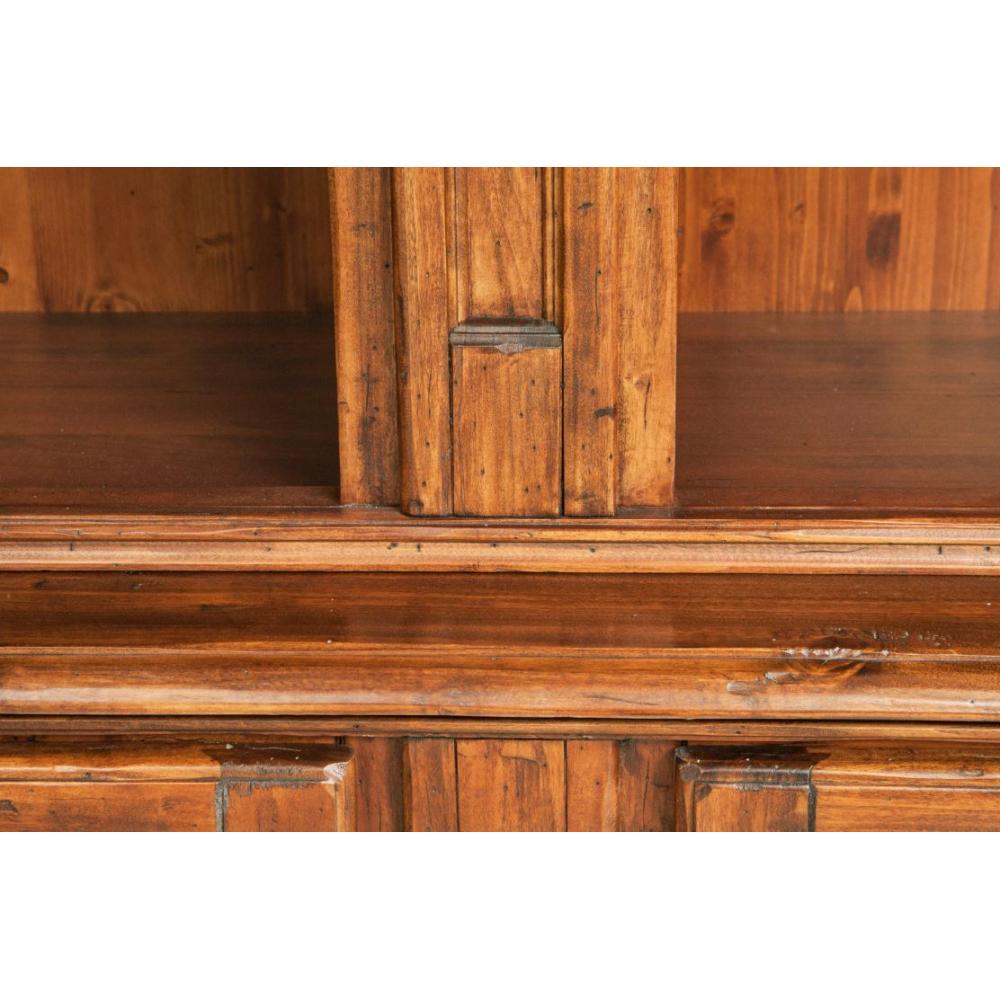 Vidéki stílusú, toszkánában gyártott könyvespolc, teljes egészében tömör hársfából. A gondos olasz kézművesség szilárdságot és páratlan minőséget kölcsönöz ennek az impozáns, 230x47x235 cm méretű könyvespolcnak. Tágas, nyitott polcokkal felül és két nagy résznek alul, melyeket két dupla ajtó zár le, elegánsan berendez nagy nappalikat és irodákat.