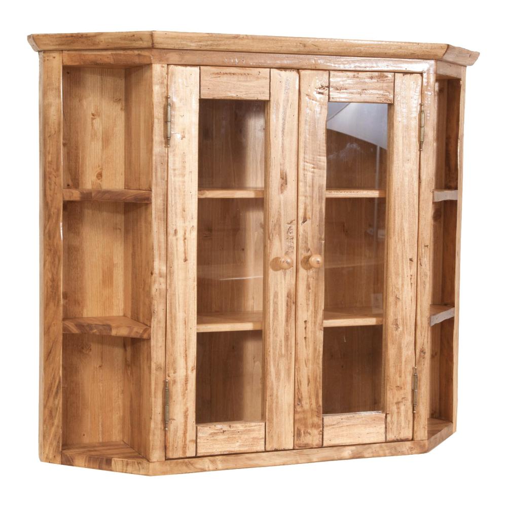 BISC Country stilusú, rusztikus tömör hársfa vitrines fali polc, téka, 86x21x75 cm