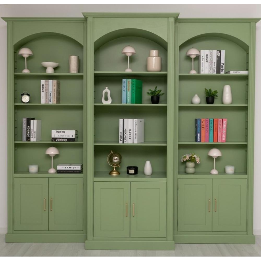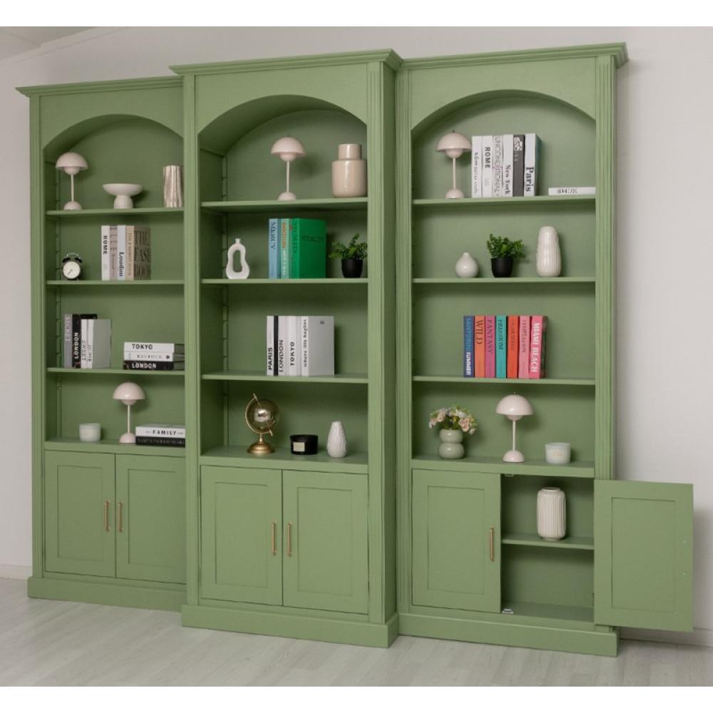 LM Nagyméretű vintage stilusú zöld könyvszekrény sor, választható szinekben, 250 cm magas, 300 cm széles
