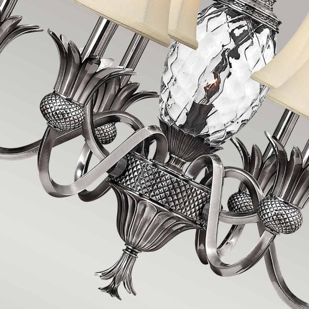 Az angolos, cottage hangulathoz illeszkedő csillárt betervezhetjük az eleganciát sugárzó kaliforniai jellegű, exlúzív mediterrán stilusú nappaliba, étkezőbe vagy egy kárpitozott franciággyal és tömörfa ruhásszekrénnyel berendezett hálószobába is.
