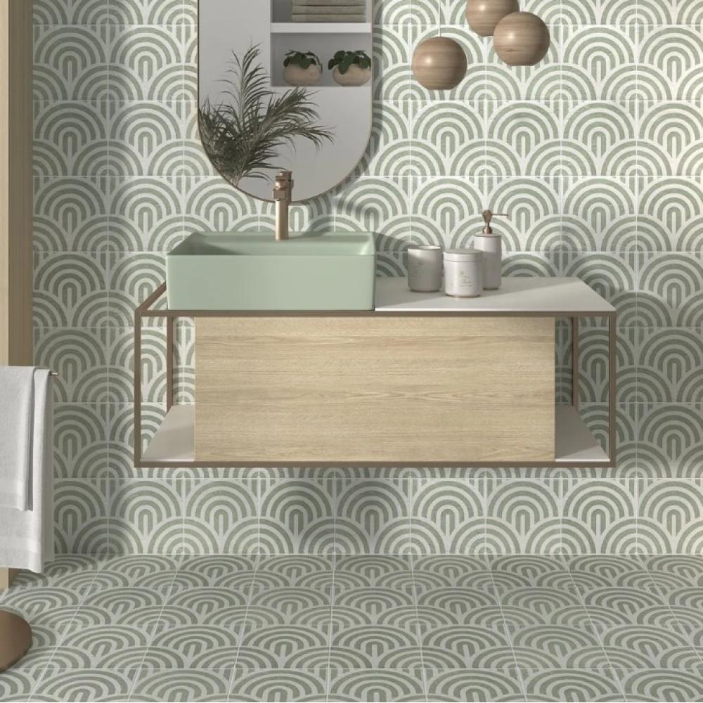 MZ Art deco stilusú zöld mintás padlóburkolat, csempe, fagyálló, csúszásmentes, 20x20 cm