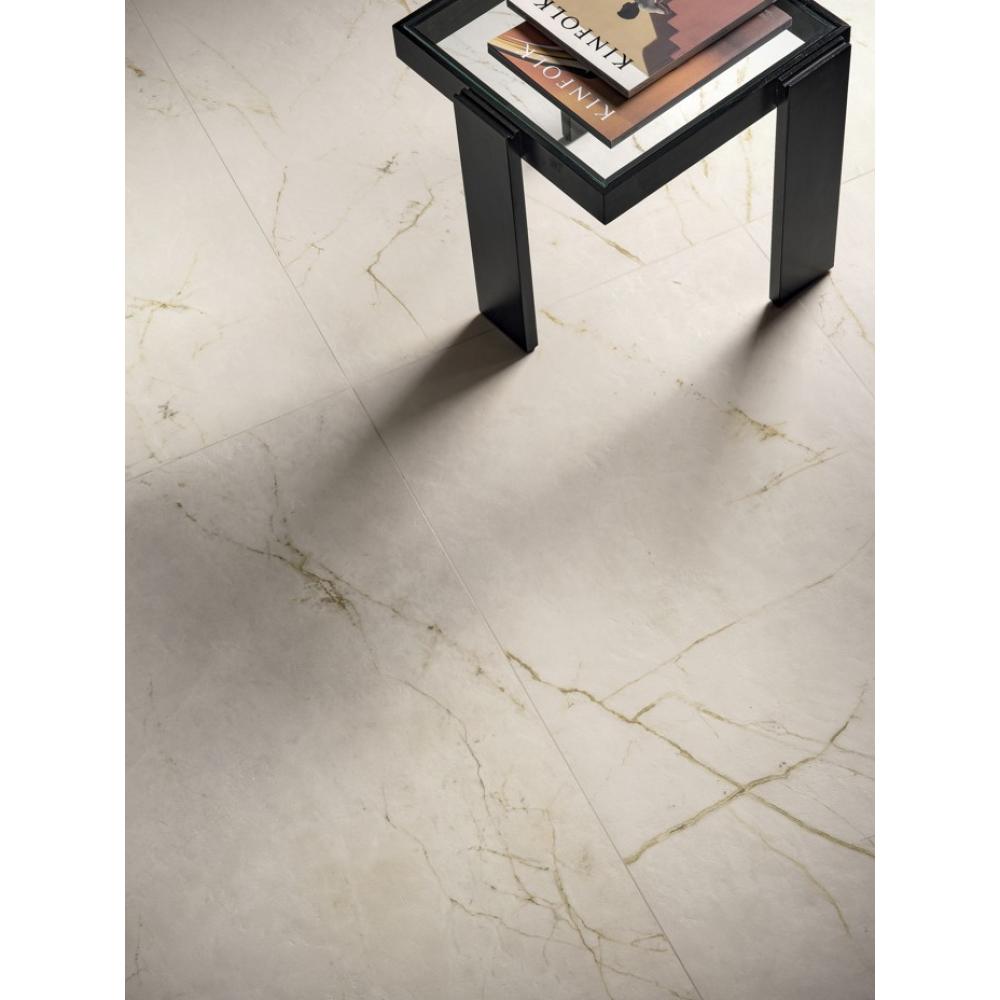 Ezt a színt a klasszikus toszkán márványok világa ihlette, ahol a tiszta fehér kőzetet sűrű, körkörös és hullámzó aranyszínű erezet hálózza be. Ez a burkolat nem csupán egy felület, hanem egy önálló díszítőelem, amely mozgást és életet visz a térbe.