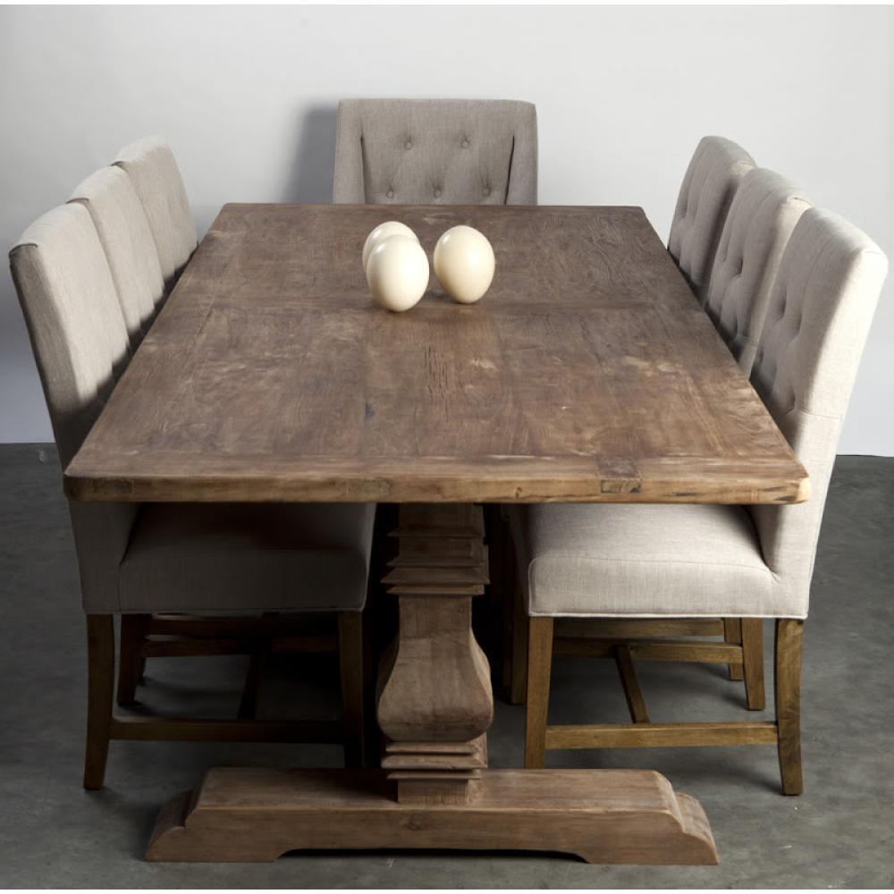 Lenvászon tűzött kárpittal gyártott, tömör fa szerkezetű székeket ajánlunk hozzá. Bőrrel kárpitozott székkel is tökéletes az összhang.