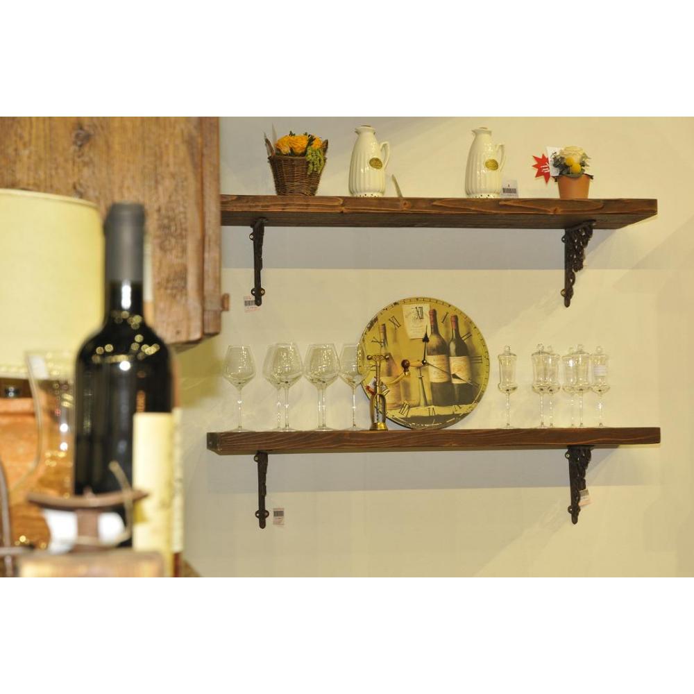 Az öntöttvas konzolokkal szerelt tömörfa polcot méretre is gyártjuk, a vevők által kért szinre festve, viaszos felületkezeléssel.