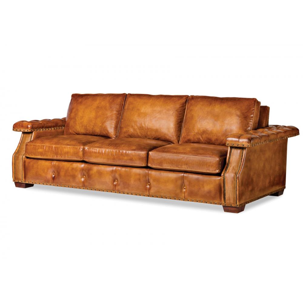 A réz színű szegecsek és a barna falábak teszik igazán elegánssá ezt a 3 személyes bőr kanapét.