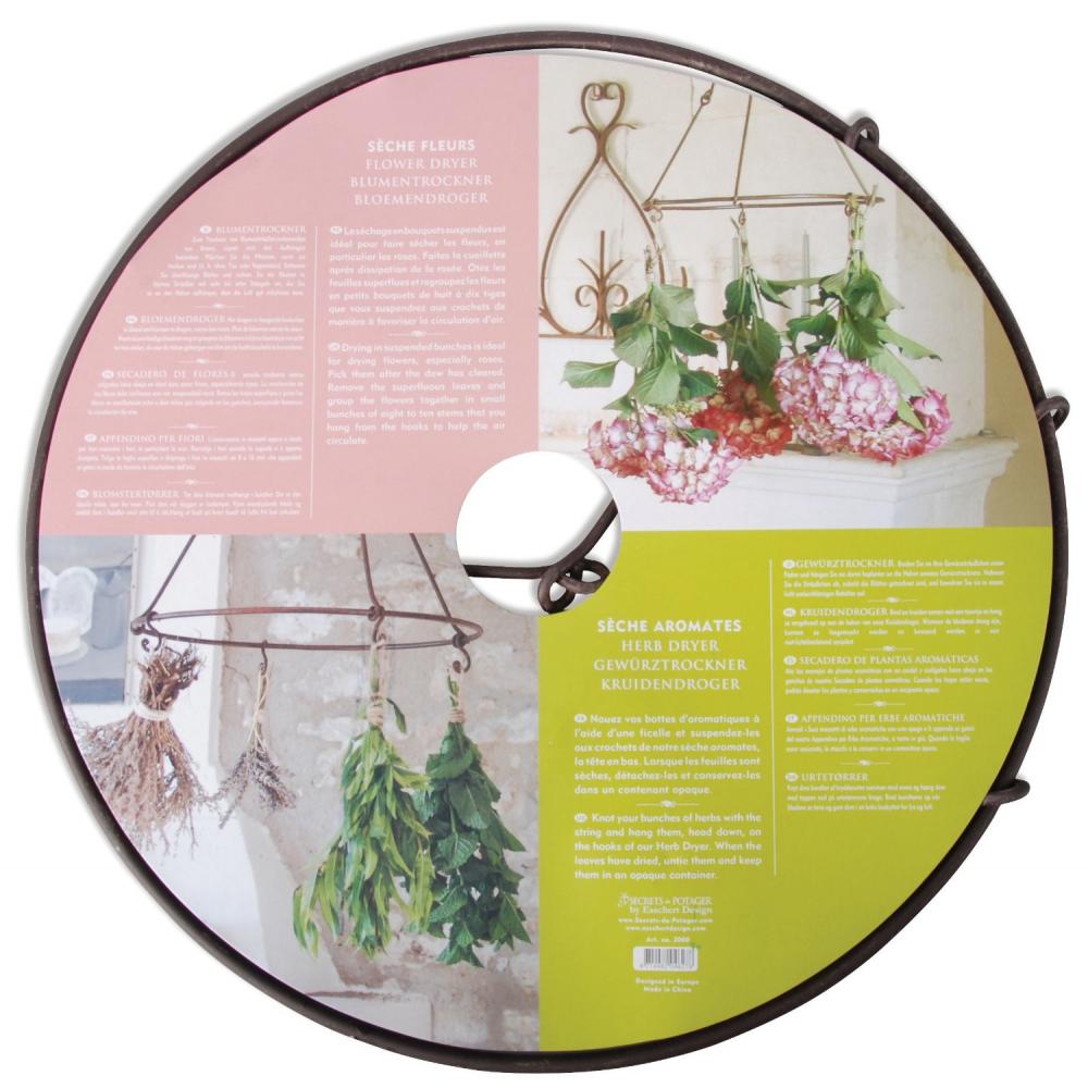 Ez az egyedi, mediterrán, country stilusú, felakasztható, kovácsolt vasból készült növény és virágszárító alkalmas konyhában, teraszon, verandán fűszernövények, virágok, levendula szárítására vagy különböző eszközök tárolására is. Hat horoggal ellátott kör alakú szárító és akasztó, páratlan és különleges meglepetés lehet szeretteinknek. A horgok különállóak.