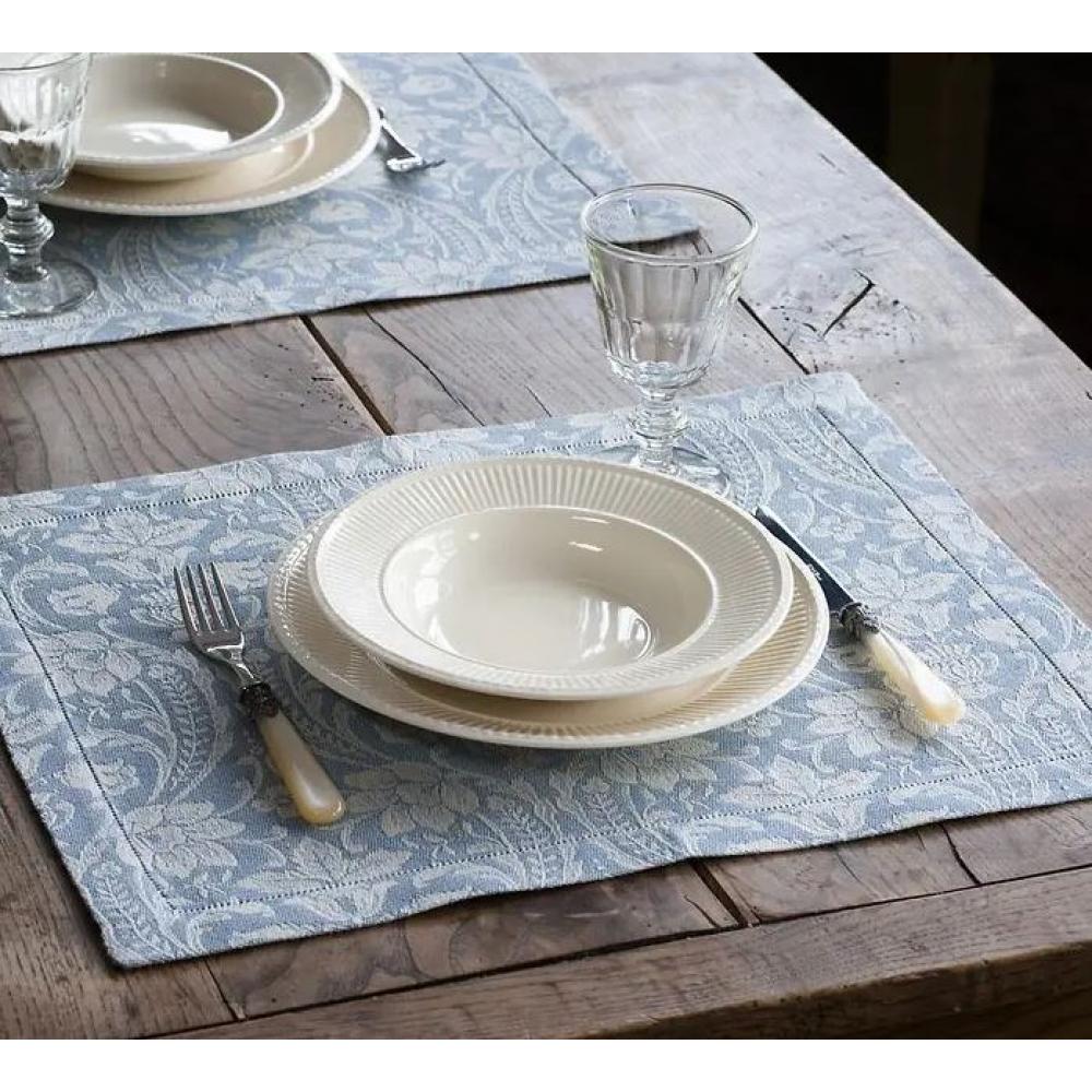 Busatti lenből készült kék tányéralátét, ünnepi terítékekhez