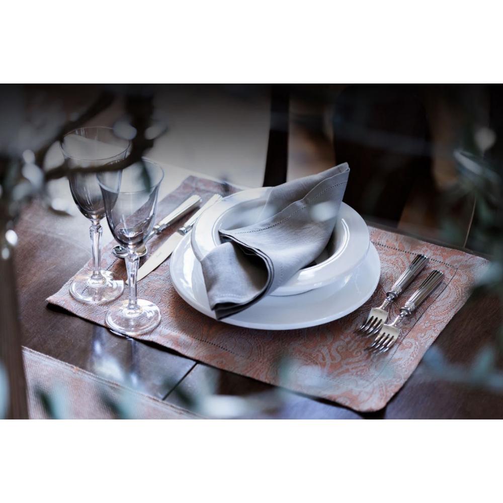 A tányéralátét 40 x 50 cm méretű, 60% lenből és 40% pamutból készült.
