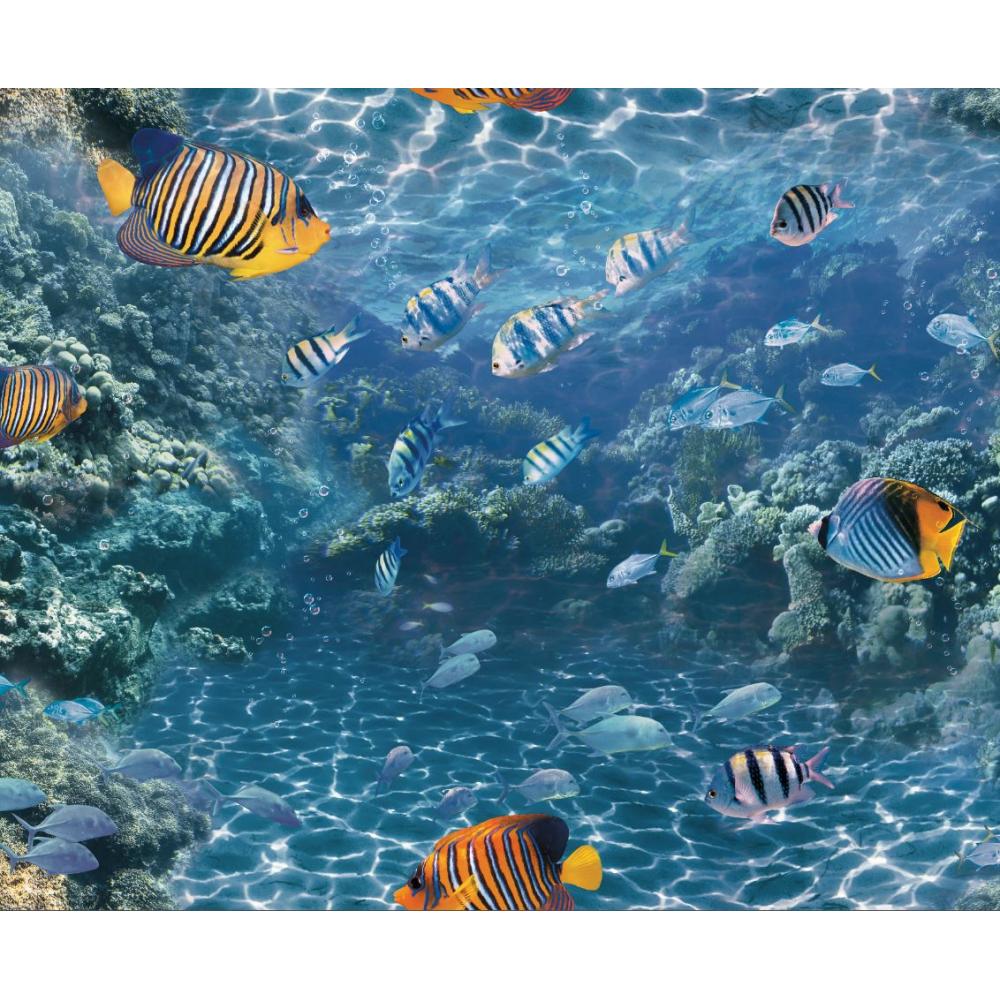 Az akváriumérzetet keltő egzotikus, vidám és élénk, mosható tapéta elhozza számunkra a tenger közelségét. Izgalmas és természetközeli látványt biztosít városi lakásba, kávézókba, modern házakba vagy nappalikba,luxus irodákba.