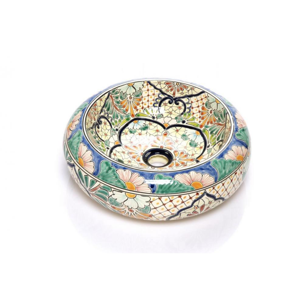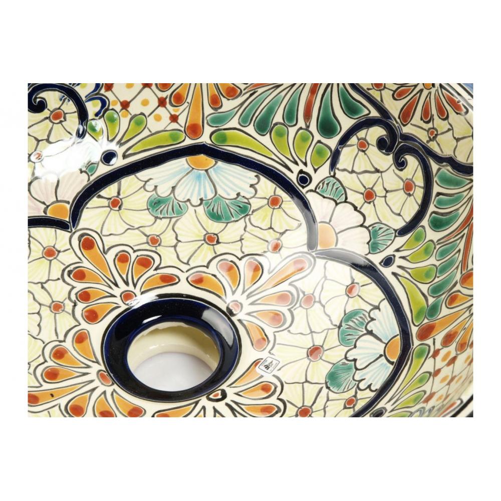 A mexikói mosogató belső és külső felületén egyaránt kézzel festett díszek találhatók, míg a mosogató lapított formája miatt és lekerekített alakja miatt az összes dísztáthatóvá teszi, amikor ránézünk.