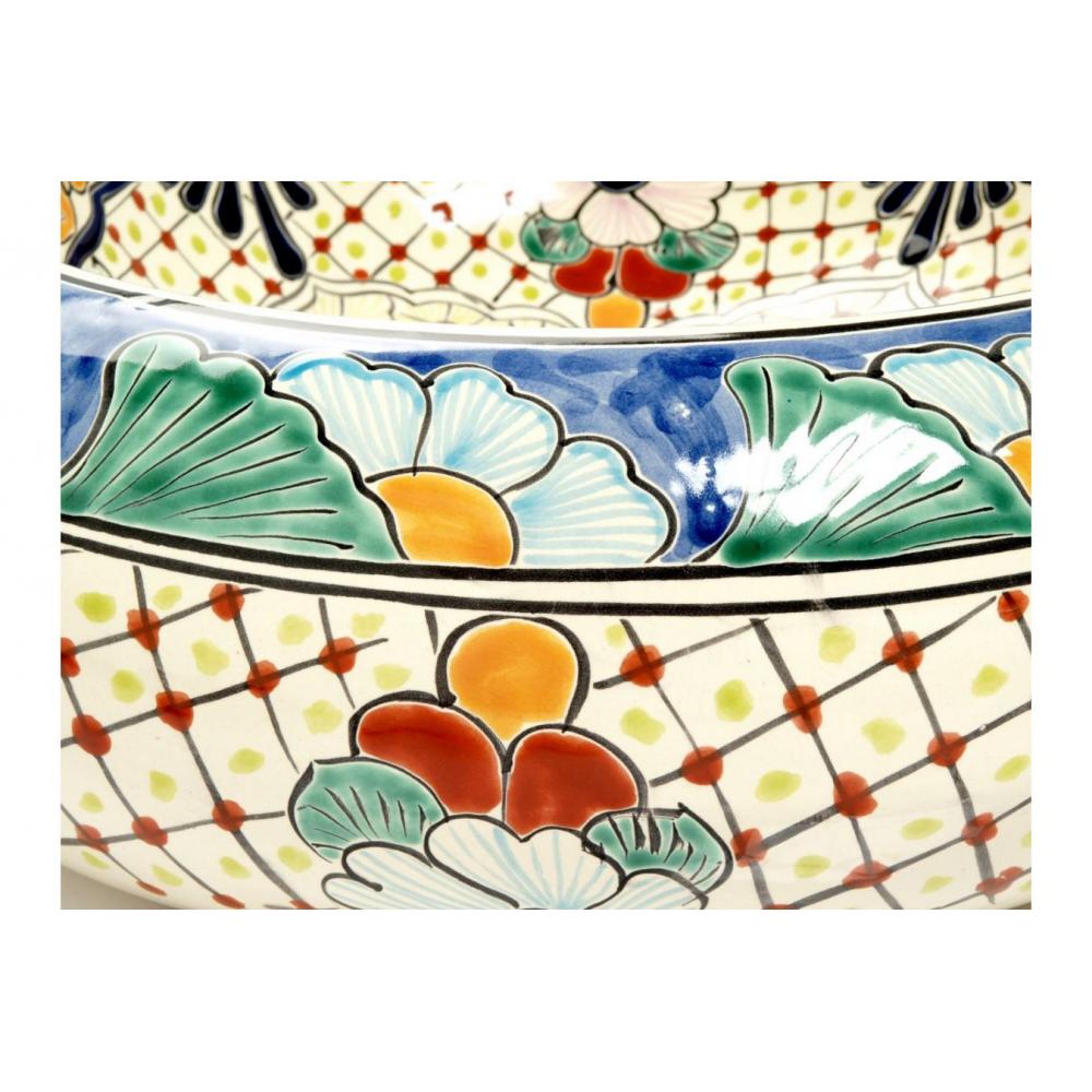 CM Mexikói kerámia mosdótál, virágos festéssel,
